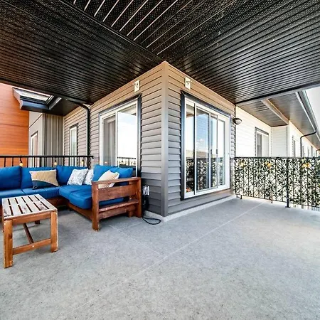 The 2-room Bright Luxe Condo, Ac, Top Floor, King Bed, Balcony!, located in the Southwest Edmonton district, a 15-minute ride from Holy Trinity Neighborhood Church, features views of the city. This spacious apartment also has a patio overlooking the courtyard.